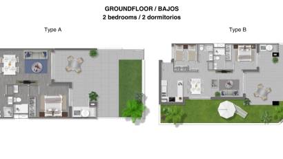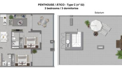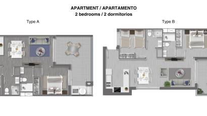 Kaikissa asunnoissa on kaksi makuuhuonetta ja kaksi kylpyhuonetta sekä terassi, paitsi kattohuoneistoissa, joissa on kolme makuuhuonetta ja kaksi kylpyhuonetta sekä oma solarium. Asunnoissa on olohuone, jossa on moderni avokeittiö ja liukuikkunat, jotka johtavat etuterassille. Keittiökaapistot ja keraaminen liesi, mikroaaltouuni ja uuni sisältyy hintaan.
